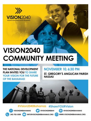 The Government of The Bahamas, though the National Development Plan Secretariat, will hold a community meeting at the Performing Arts Centre, College of The Bahamas, on Saturday, November 14th.